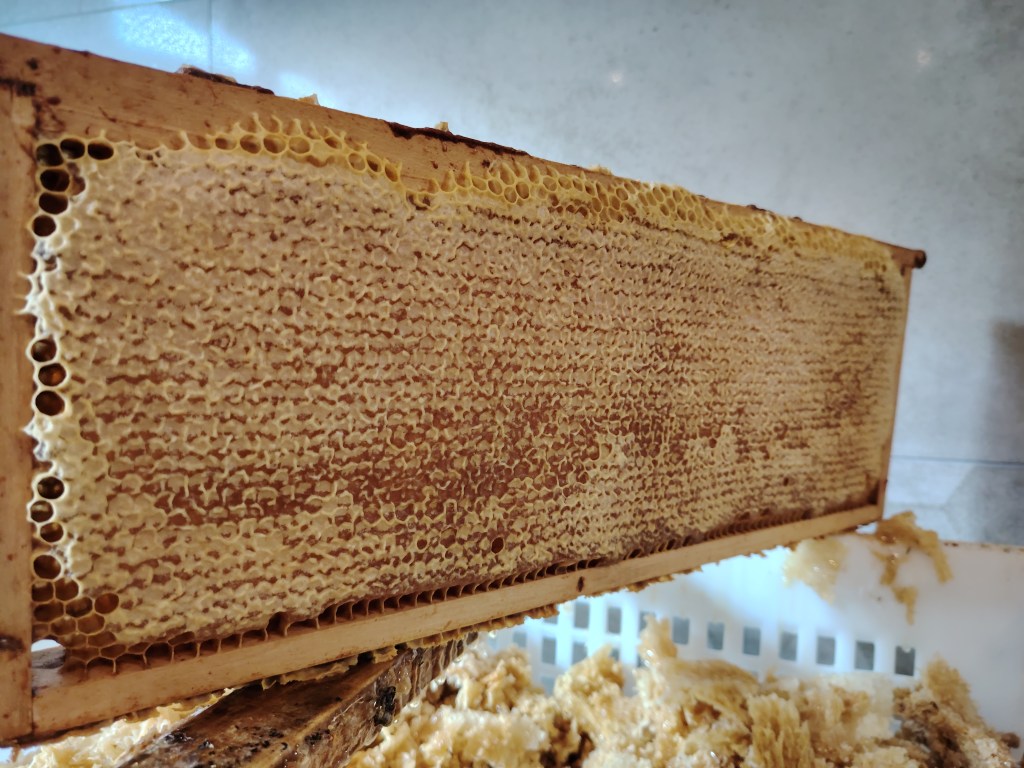Ce produit est un cadre complet de miel en rayon, tout droit sorti de la ruche. C’est l’équivalent de 4 cadrons de miel en rayon.
