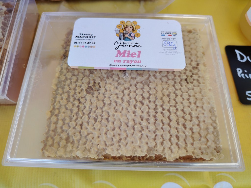 Le miel en rayon contient tous les bienfaits du miel, de la cire, des traces de propolis et de pollen.