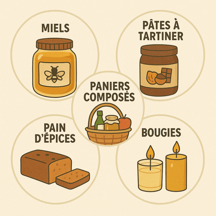 Cet espace vous permettra de découvrir les différents produits que Le Rucher de Jeanne propose à la vente, tels que différents miels, pains d’épices maison revisité, Gat’O Miel, pâte à tartiner maison, kit créatif de fabrication de bougies artisanales, mini pots de miels pour évènements (mariage, baptême, anniversaire), etc.