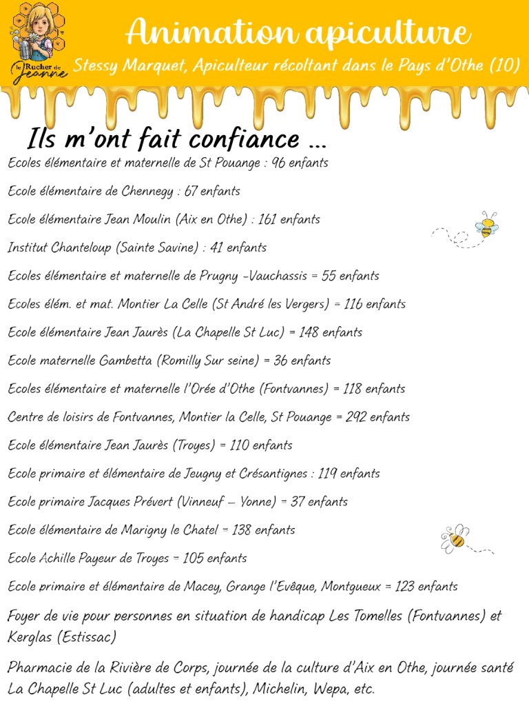 Le Rucher de Jeanne vous propose d’intervenir directement sur votre site, avec tout le matériel pédagogique adapté, les connaissances, le savoir et le discours adapté aux différents âges des apprenants.